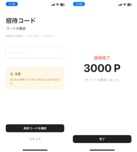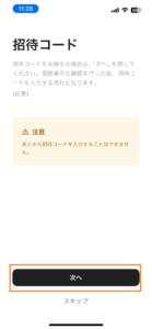 招待コード(WYXLA9BX)は、このタイミングでしか、入力できないため、必ず入力しましょう!