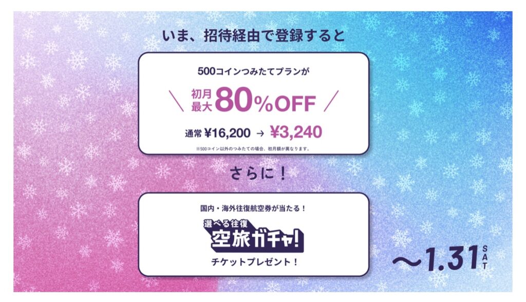 コインを貯めて、ホテルや航空券を予約するつみたて旅行サービス。