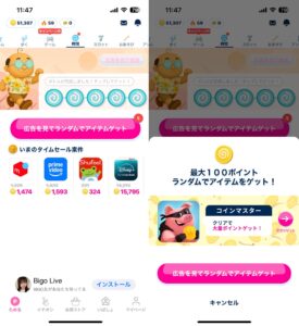 ゲームやアンケートでポイント獲得すると、